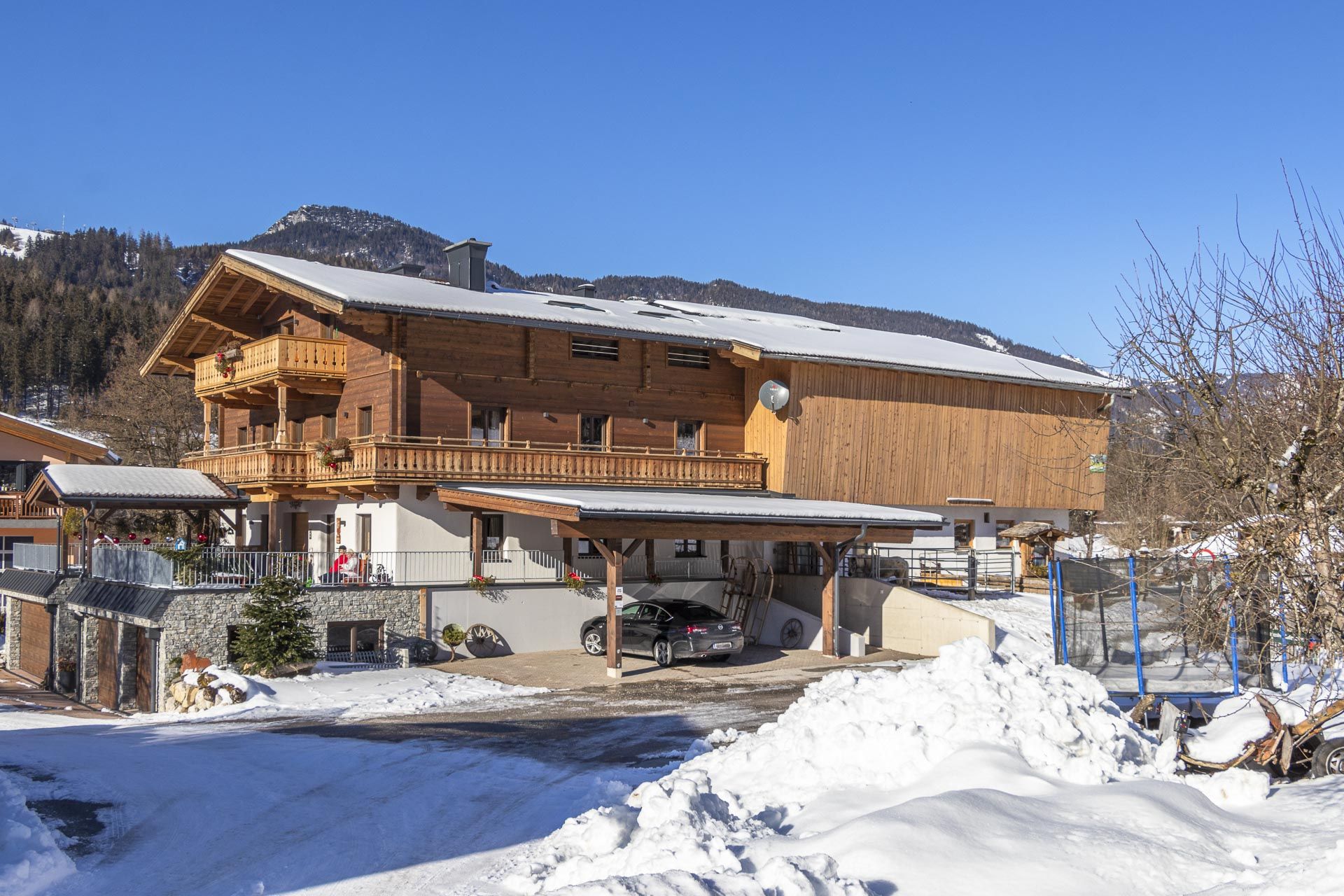 Im Winter hingegen lockt das Familienskigebiet Loferer Alm mit seinen perfekt präparierten Pisten, direkt am Haus können Sie in die Langlaufloipe einsteigen oder die Region bei einer Winterwanderung oder einer Skitour entdecken.
